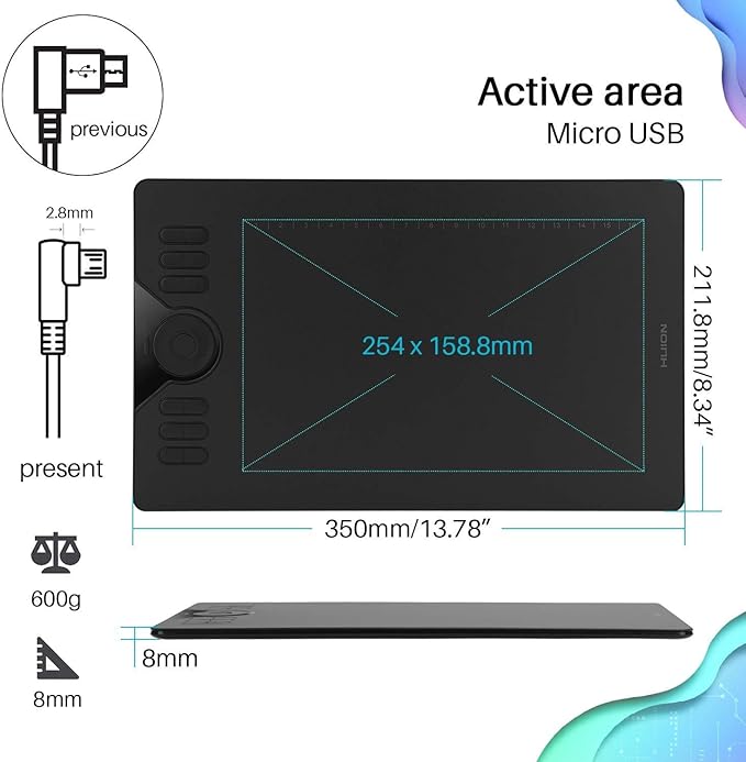 - 8192 Pen Pressure – You can enjoy smooth and accurate lines when using the drawing tablet; 266PPS Report Rate and 5080LPI Pen Resolution; Compatible with Photoshop, SAI or mainstream digital art software; One year warranty.