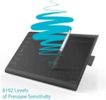 • Tilt Function Battery-free Stylus – This computer graphics tablet come with a battery-free stylus PW100, no need to charge, allowing for constant uninterrupted drawing. ±60° tilt support enables imitation of lines input with diverse drawing gestures, with accuracy ensured.